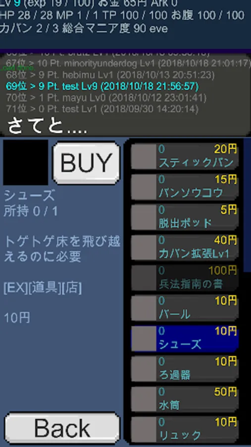 ゲームプレーのデータ(Lvやステータス、HN等)がサーバー上に送信され、ランキング等のゲーム上で共有されます。