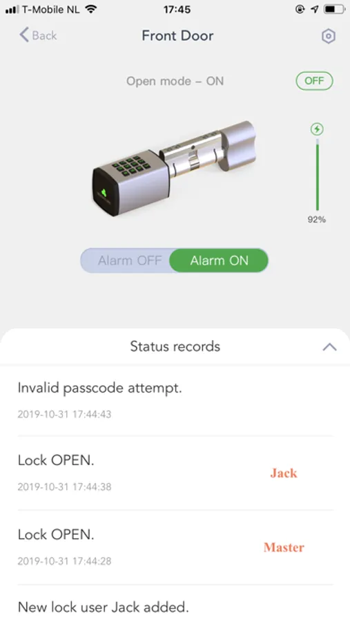 - Receive instand notifications whenever the device is armed and an alarm is triggered. You can check the complete status records of your devices from the app;