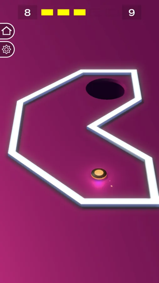 Sometimes it’s about getting the right angle or the right timing, but also releasing your Buca puck at the right pace. Avoid the pink walls as they will kill you, but you have three chances per level to get the ball or puck in the hole.