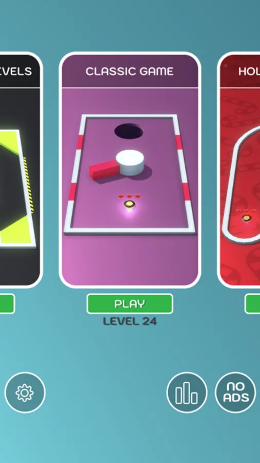 Glide effortlessly around satisfying curved corners to get your ball in the hole. How satisfying can you get?! Gauge the right angle and speed as you find the correct way to get the puck in the Buca hole. Oh yes! Spin round gorgeous levels with relaxing ambient music and sound FX.