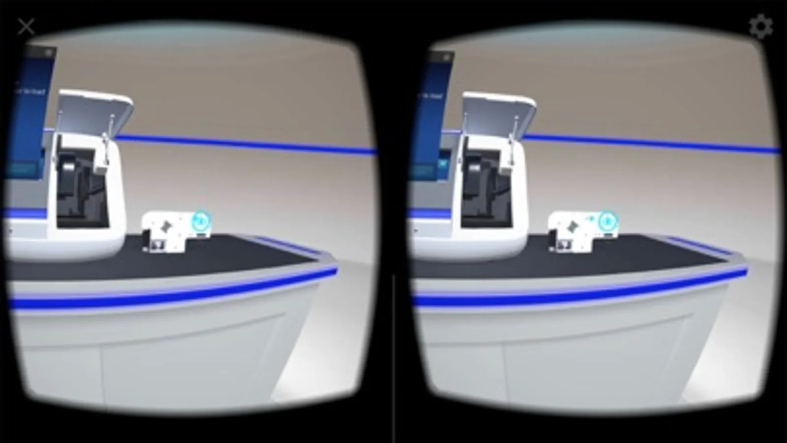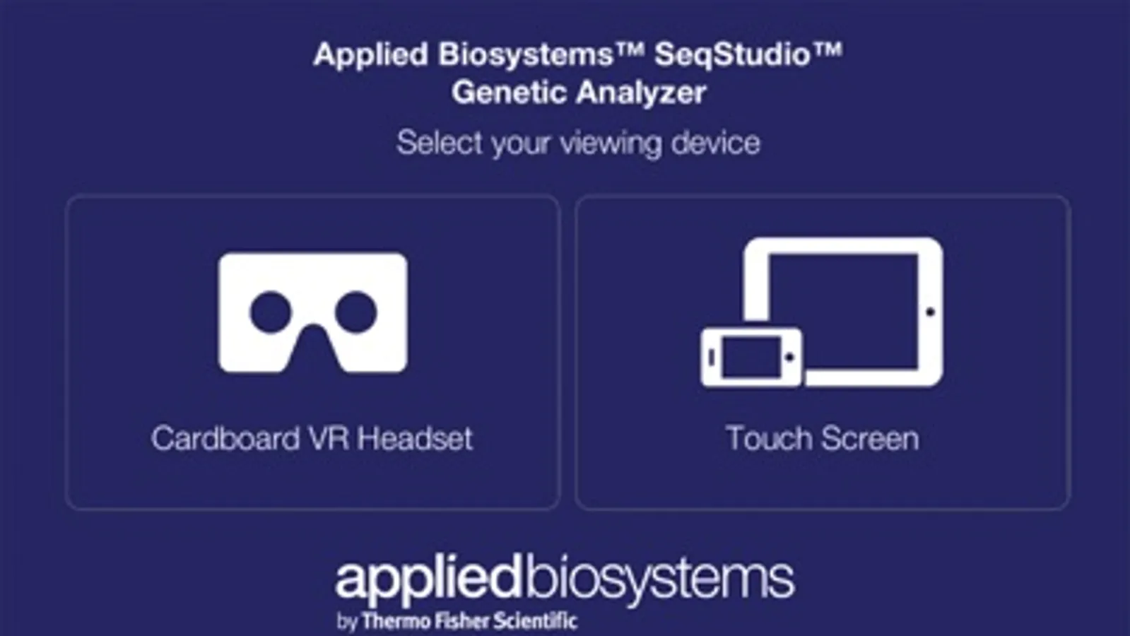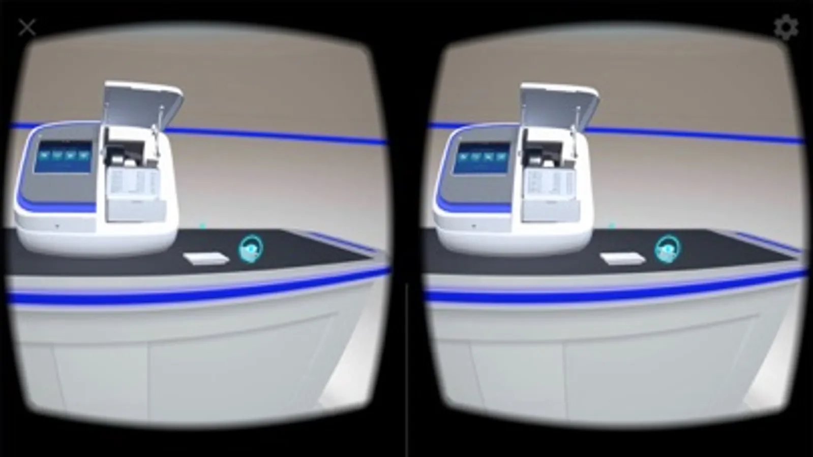 The first option is to place your mobile phone in a Cardboard VR headset where you will be able to perform a run on the SeqStudio instrument in Virtual Reality. This will bring you into a lab where you can see in 360 degrees and virtually run the instrument. The interactivity will happen using “gaze control,” or placing the center pointer on viewable targets.