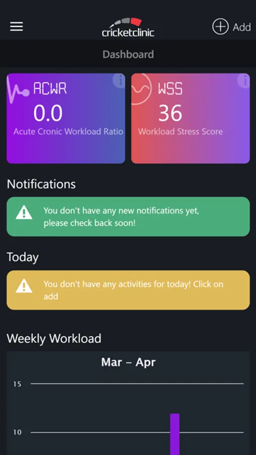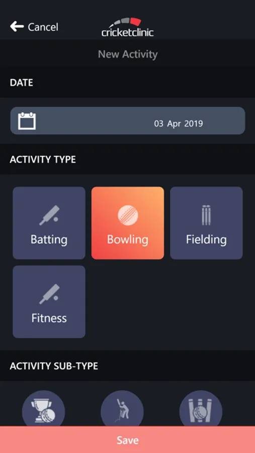 Cricket Clinic Club- An app for cricketers to manage and monitor their work load.