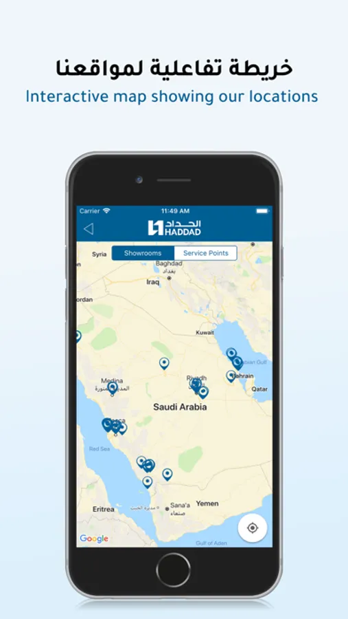 Find the 60 locations of Al-Haddad showrooms in Saudi Arabia and choose the nearest showroom to you