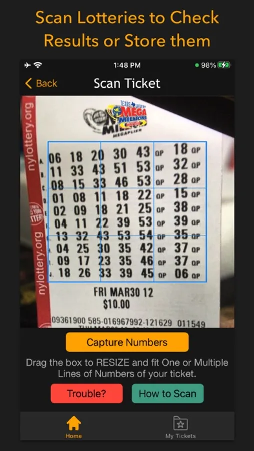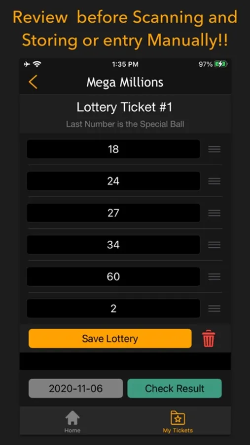 - Fully REVIEW & modify scanned lottery before you STORE or check result