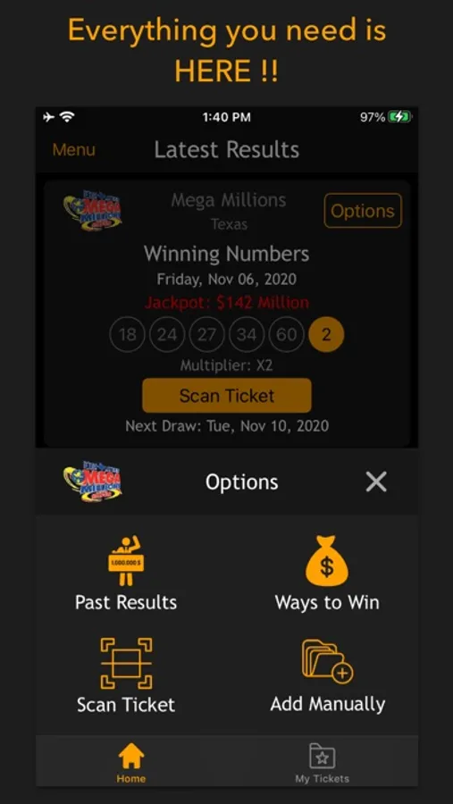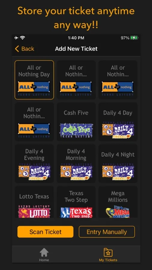 - SCAN physical tickets and check scanned lottery.