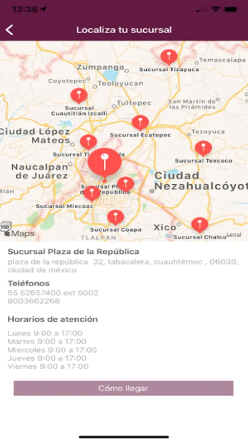 - Localizar tu sucursal más cercana