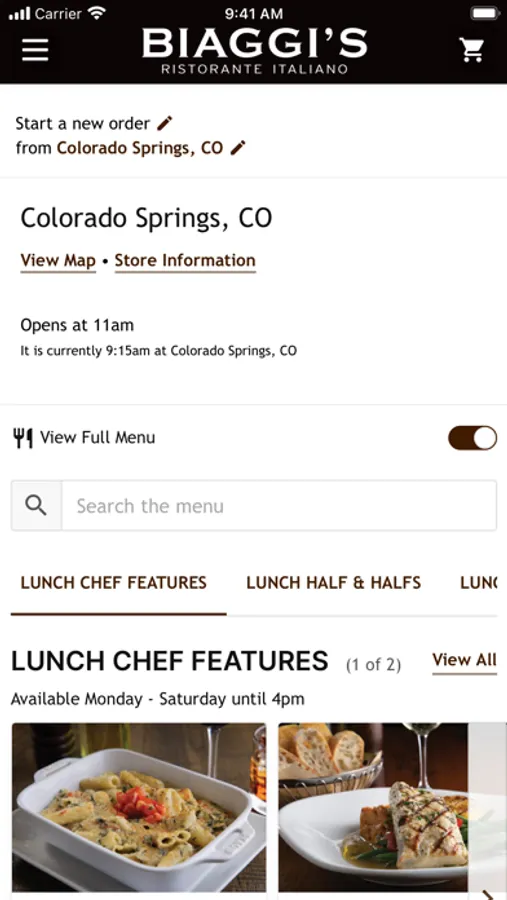 Your schedule may be hectic, but enjoying the great taste of Biaggi’s doesn’t have to be! With our app, it’s easy to find the nearest Biaggi’s, browse the menu, order on-the-go or reorder your favorites.