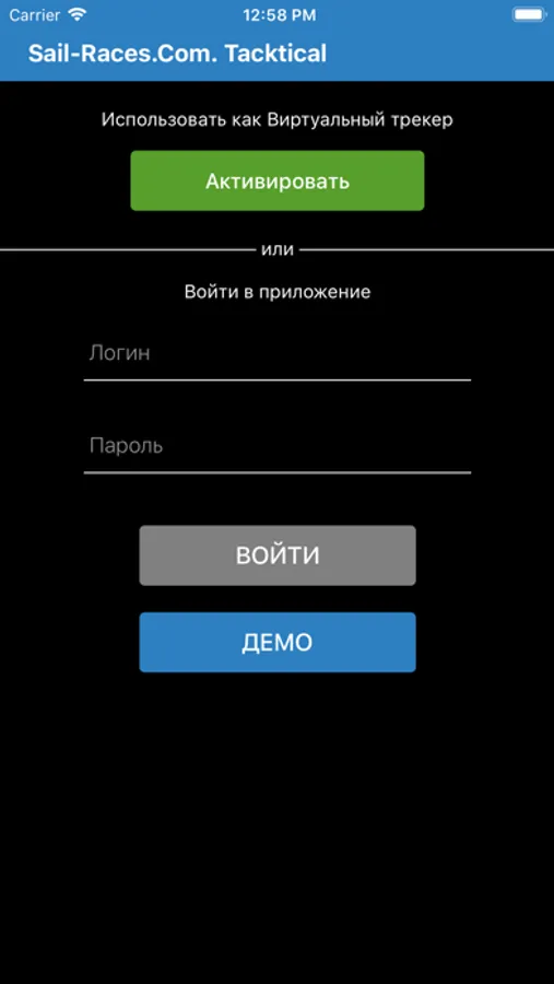 Для использования приложения зарегистрируйтесь на http://Sail-Races.com