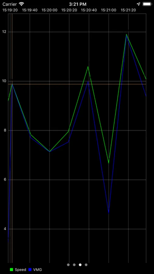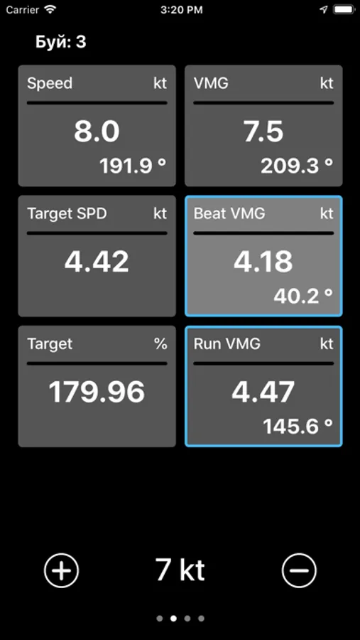 - Отображение и анализ основных параметров: Скорость(SOG), Курс(COG), VMG, Target Speed, Perfomance;
