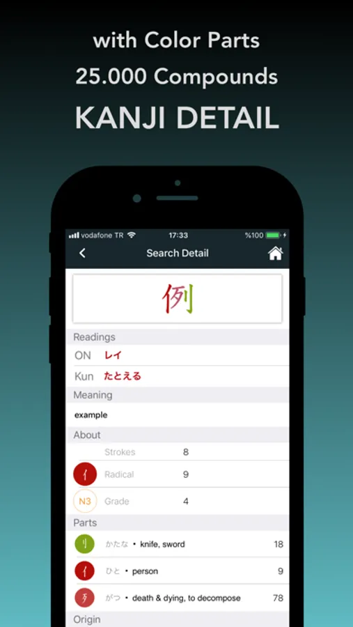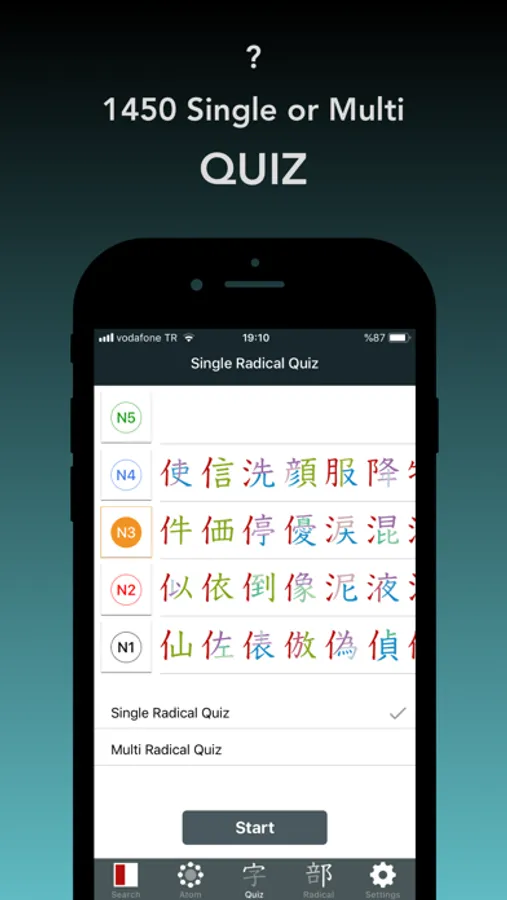 * Each kanji has a Single and Multi Kanji Quiz at JLPT level.
