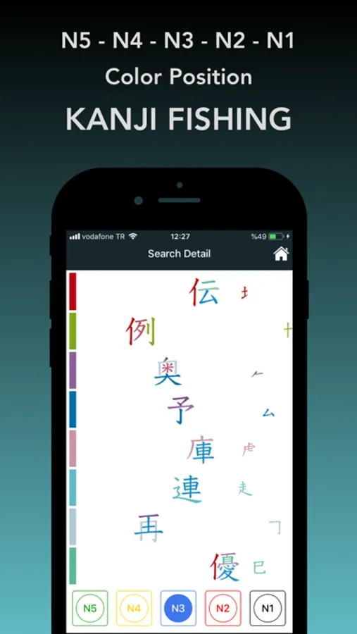 * Kanji fishing; Swipe and catch all levels of Kanj.