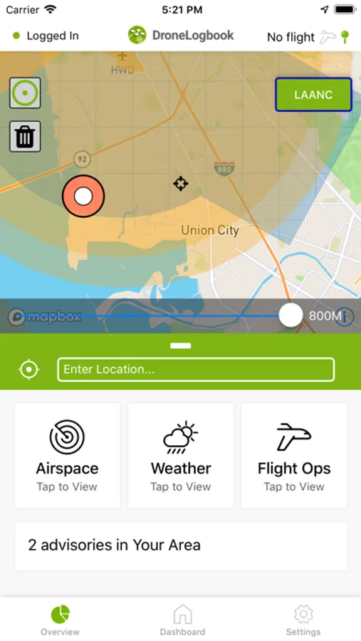 • Check current airspace status (via Airmap integration)