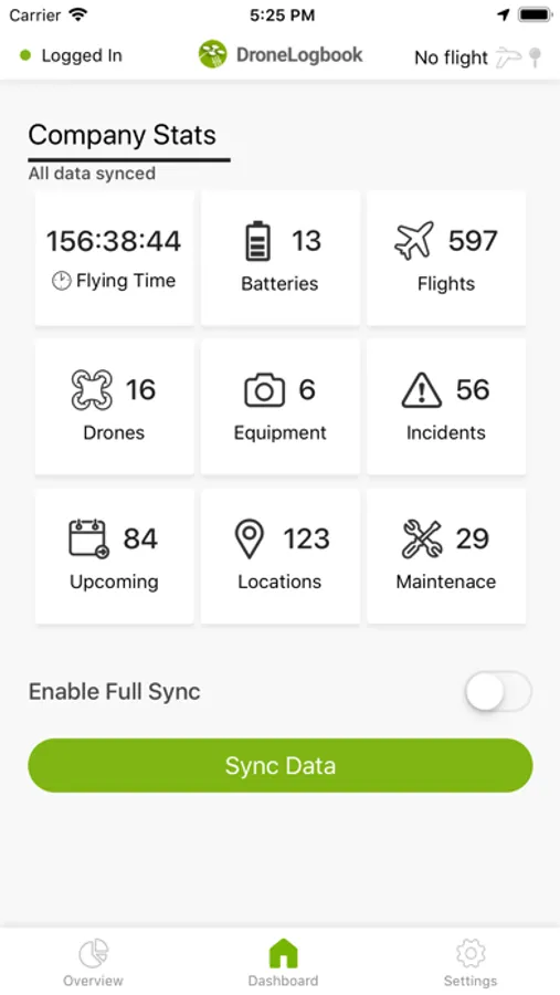 • Manage and track all your operations offline: Flights, Drones & Equipment, Battery Details, Maintenance, Incidents, and Locations.