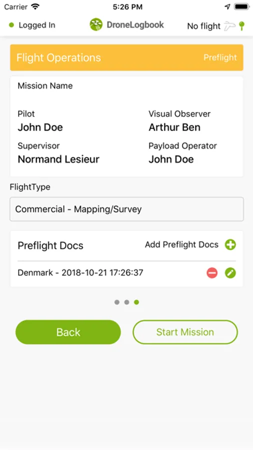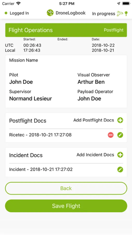 • Auto sync flight data and documents to telemetry (if telemetry synced to DroneLogbook)