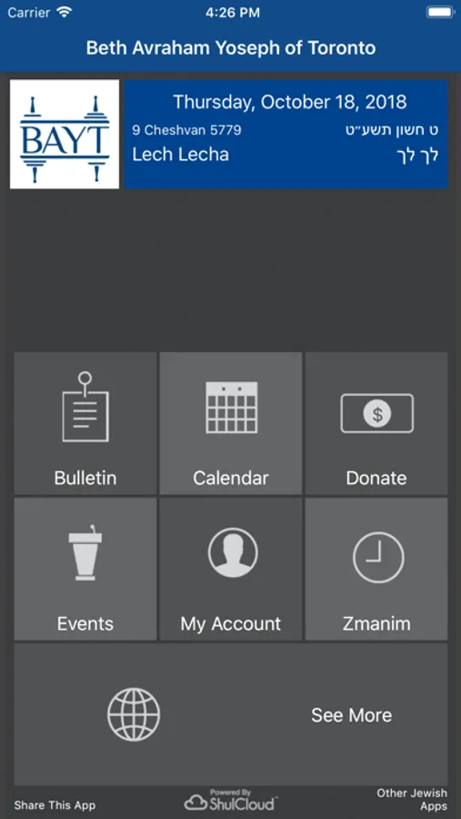 Beth Avraham Yoseph of Toronto ~ BAYT app keeps you up-to-date with the latest news, events, minyanim and happenings at the synagogue. It also gives you the localized zmanim for the shul's location and the users current location.