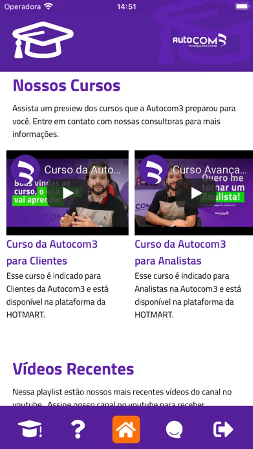 Agora você tem acesso completo ao portal da AUTOCOM3 direto no seu celular, além de CHAT para conversar diretamente com o suporte, VIDEOS e TUTORIAS para aprender mais sobre como usar melhor a ferramenta.