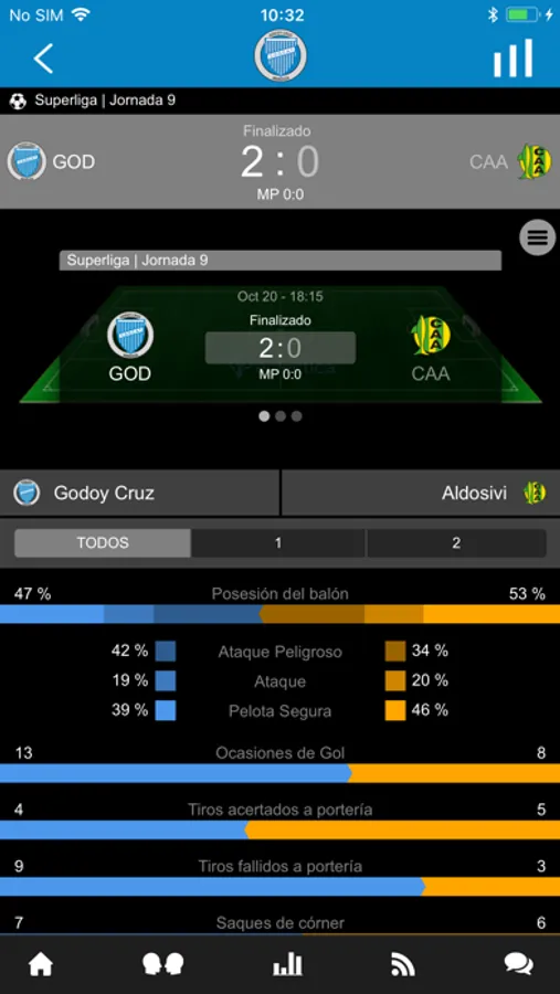 Godoy Cruz App además te permitirá ver el minuto a minuto de todos sus partidos con animación en vivo y pronosticar resultados del equipo en las diversas competencias.