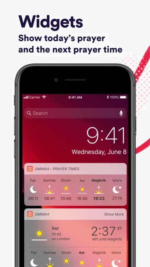 • Widgets - Right on your screen. Unique in design and unique in the way they give you the right information for prayer-times. We provide two widgets and ongoing notifications so you can always remember the prayer times (enable it in settings).