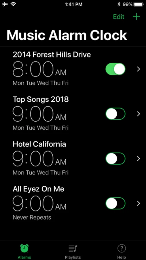 • As stated above, the app currently plays 30 second snippets of the best parts of songs, which should be more than enough to wake up.