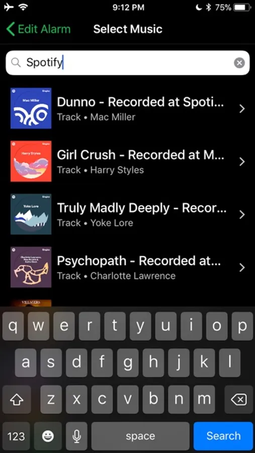 • Alarms go off for one minute max, but you can always chain multiple alarms together if you are a heavy sleeper. Spotify's API currently only lets the app play 30 seconds of each song, although entire songs are coming soon.