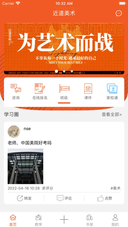 近道美术南宁校区,坐落于首府南宁,校舍建筑面积近三万平方米,设置有专业教学楼、学生公寓、图书馆、多功能教室、文化课教室、篮球场、健身房、展厅、餐厅、咖啡厅、超市等基础硬件设施,为艺考学子提供舒适的学习和生活环境。