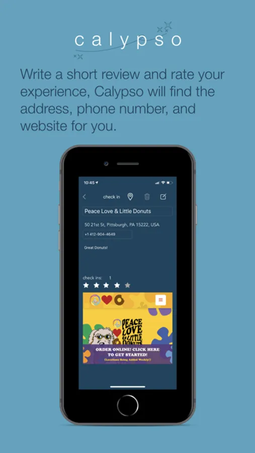 Calypso is an app that allows you to save your favorite places, leave comments and reviews, and share with friends. Restaurants, bars, museums, parks, stores- the options are endless.
