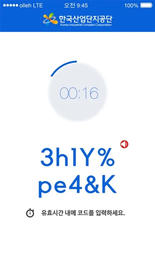 한국산업단지공단 스마트 인증은 사용자 2차인증시 사용가능한 일회용 랜덤코드를 제공합니다.