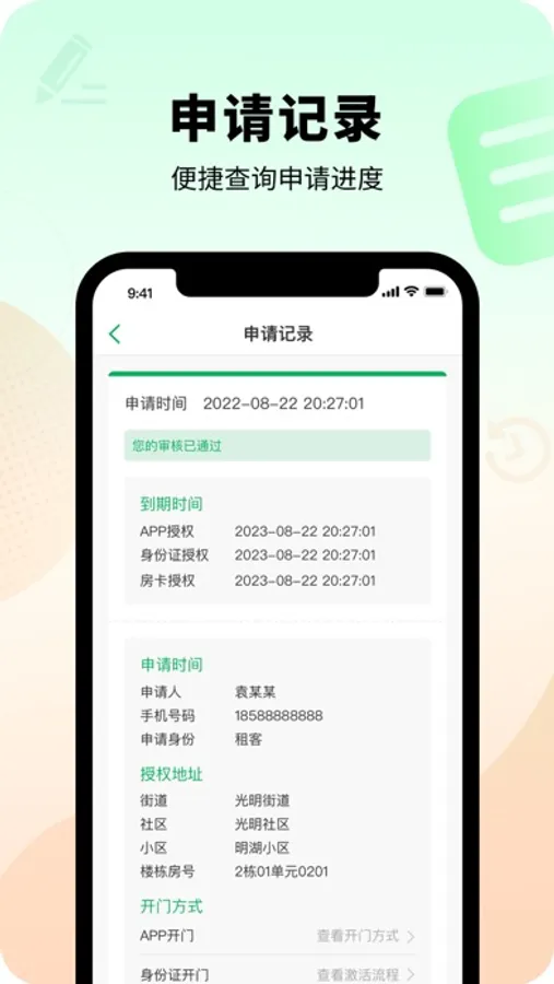 “智慧光明”可为用户提供自主申报、一键开门、拨号呼叫、蓝牙开门等服务,居民亦可根据社区或APP使用指引,完成自主申报后前往门禁机进行身份证卡及人脸识别激活,多样化的开门方式极大地提高了居民的出入体验,实现掌上便民,让居民分享智慧城市建设成果。
