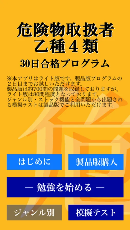 本アプリはスマートフォン向けですが、本当に危険物取扱者試験 乙種第4類に合格するための内容となっています。