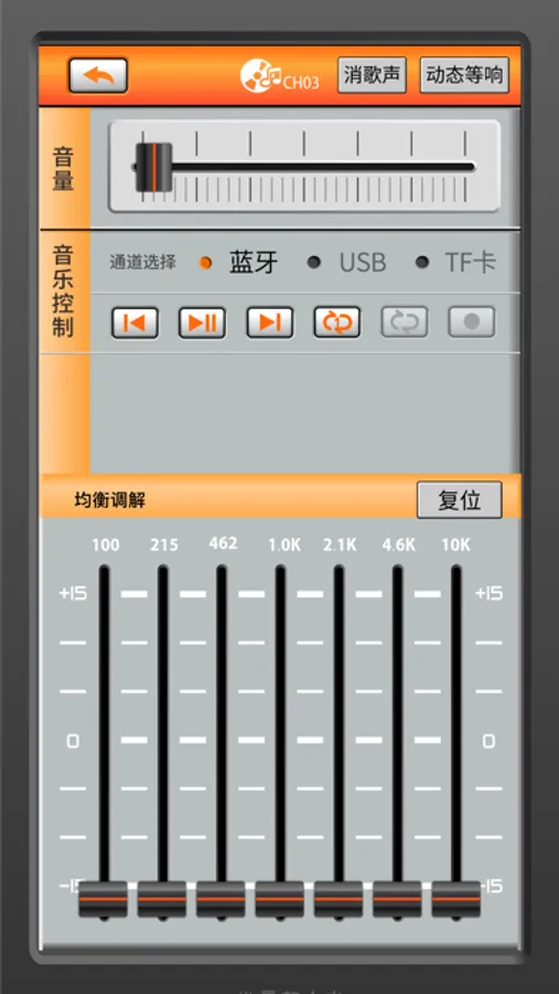 通过这个APP你可以让手机APP跟音箱数据同步,当你在APP上调整音量的时候,音箱会同步改变音量大小,当你调整音箱音量的时候,APP上面会同步显示音量大小。还有录音、单曲循环、上一曲下一曲、播放和暂停等功能,还可以通过吉他、麦克风和音乐播放通道控制不同的分音量等,实现不同的效果等。