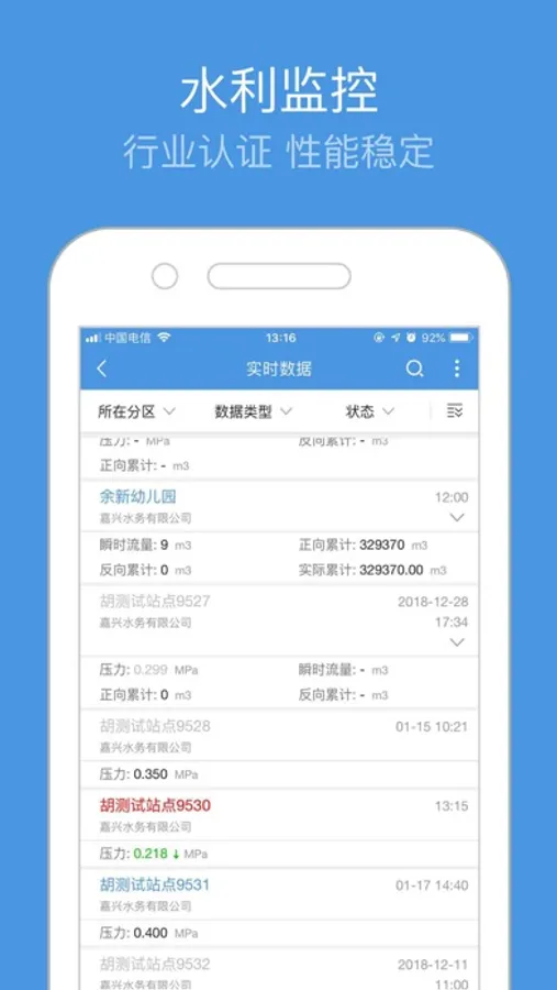 综合调度系统SCADA整合管网压力监测、流量计监测、大口径水表运行监测、水质监测、泵站监控、水厂监控、阀门调节于一体,为水司的供水规划、合理运行、爆管预警、漏损分析和应急服务等高层次的决策和优化调度提供更强大的基础数据和技术支撑,帮助水司改善管理作业,及时发现供水异常,降低运行维护成本。