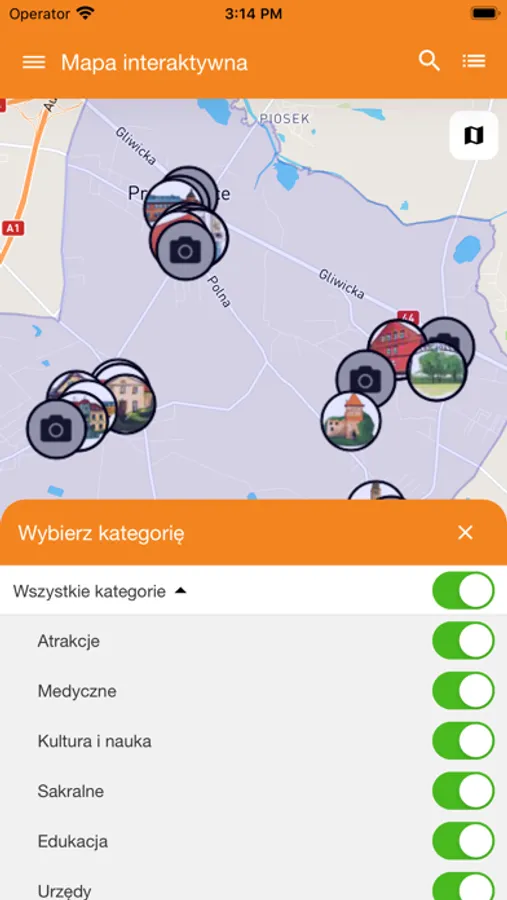 Obiekty na interaktywnej mapie są grupowane w kategoriach i podkategoriach, posiada dane opisowe i kontaktowe oraz multimedialne. Dodatkową funkcją jest uruchomienie funkcji nawigacji prowadzącej do wybranego obiektu.