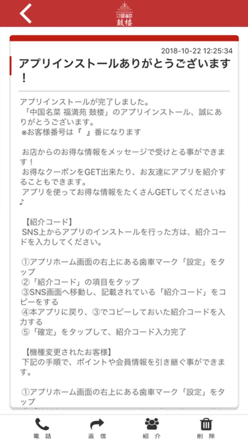 鼓 楼のアプリをSNSを通じてお友達に紹介する事ができます。
