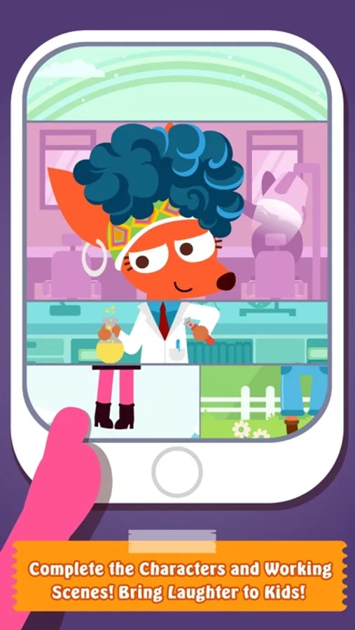 We selected 20 widely known occupations like teacher, doctor, magician, police, firefighter, astronaut, superhero, artist and dancer, ect. Kids could find out desired jobs through mix and match, observe the features in outfits, tools and other items related to the occupation to get a better understanding of a profession.