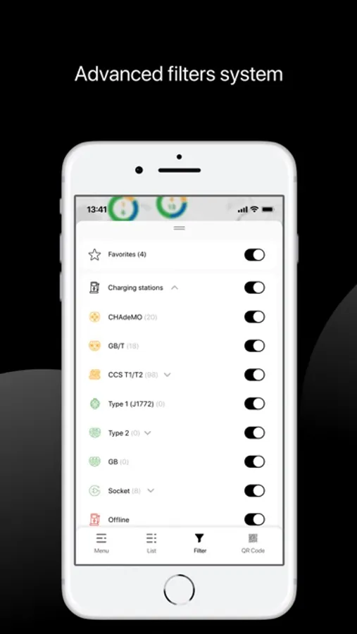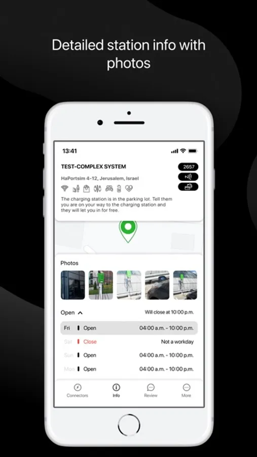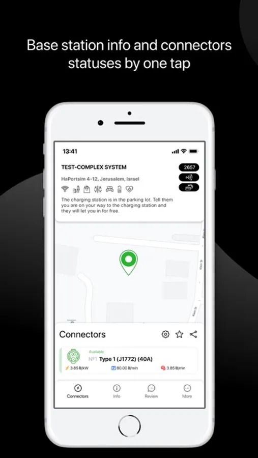 • Tap an EV charger location icon to view real-time EV charger information and status, such as: