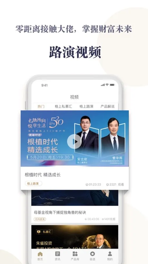 格上财富提供全面的视频服务,专业大咖直播视频,在线交流,产品路演讲解,财富增值要诀知识。