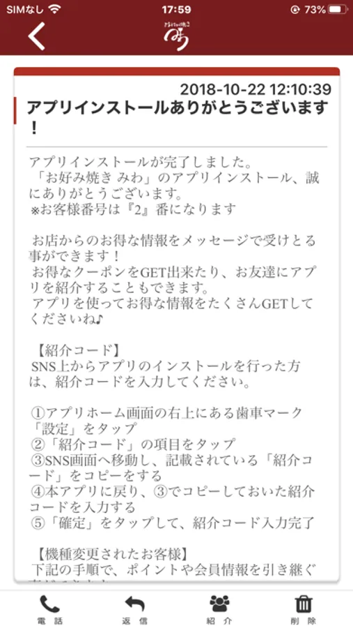 また、お店からメッセージが届くので、いつでも最新の情報がご確認いただけます。