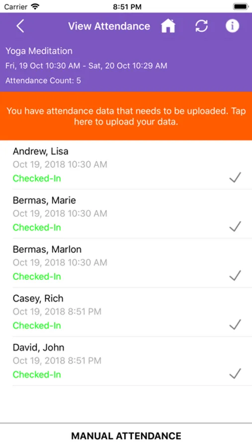 i-Attend Capture features the ability to auto sync data or manually sync your data by simply tapping on an icon. This allows your tablet or smart phone to have the most current information regarding current and upcoming events along with attendee and their badge information. The app is designed to also work offline as long data is properly synced.