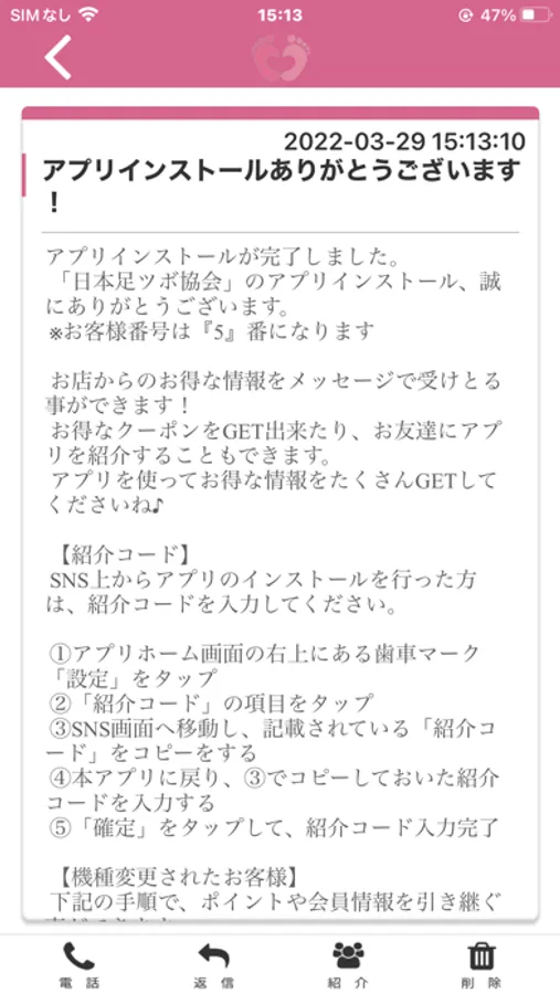 足ツボ協会のアプリをSNSを通じてお友達に紹介する事ができます。