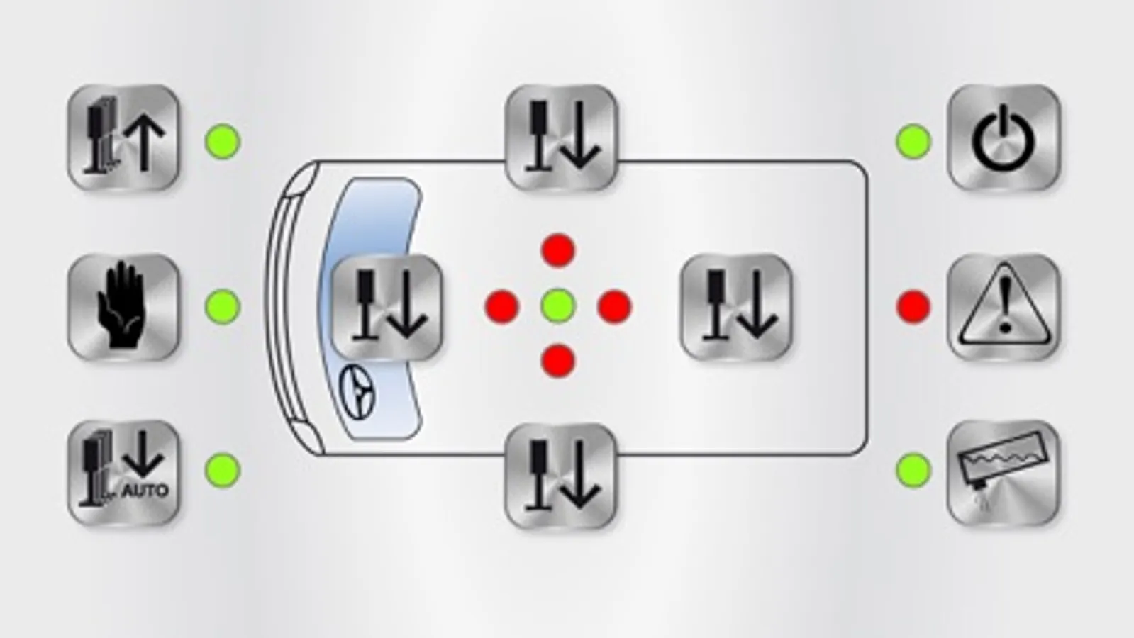 Sicherheitshalber fahren die Stützen immer paarweise aus (manuell und automatisch) damit Schäden am Aufbau vermieden werden.