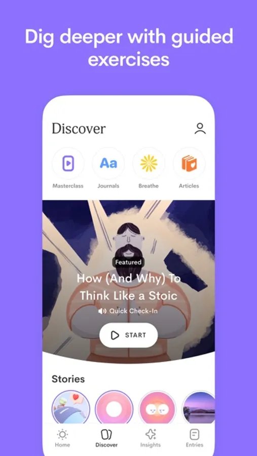 Discover quick, daily questions tailored to you, your day, and your mood. Get ready for sleep before bed or for your day ahead in the morning. Or focus on a specific area for growth with a themed, immersive guide.