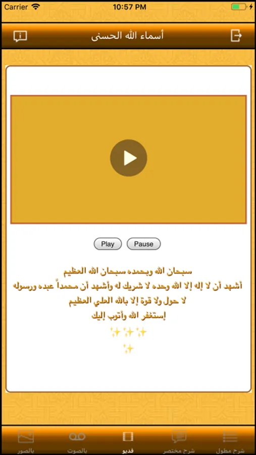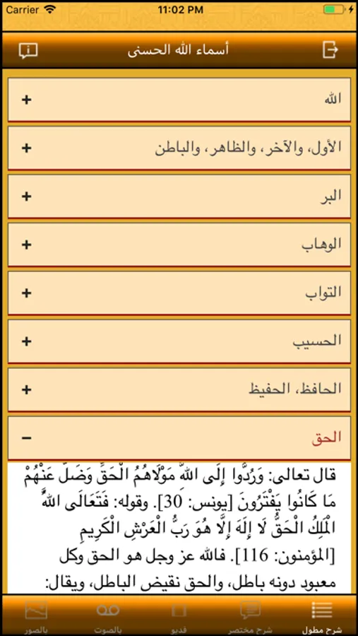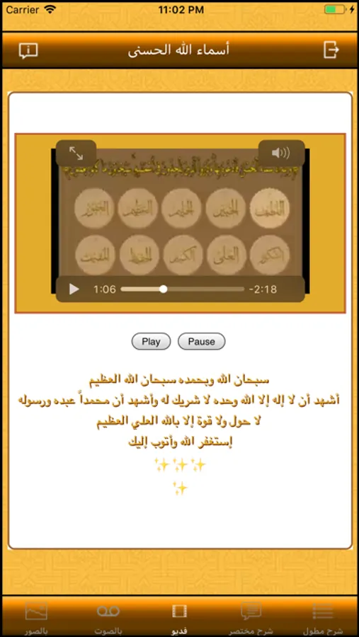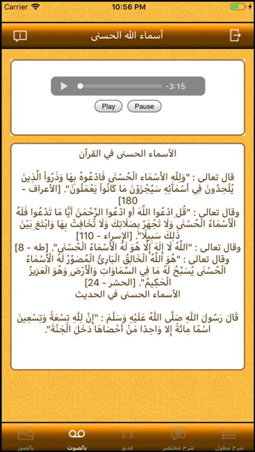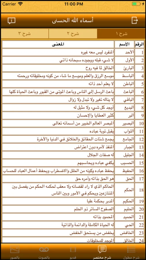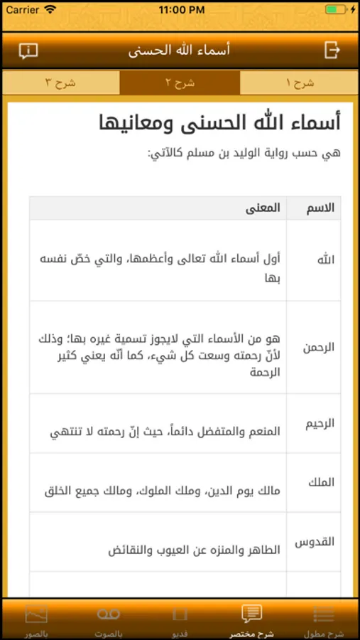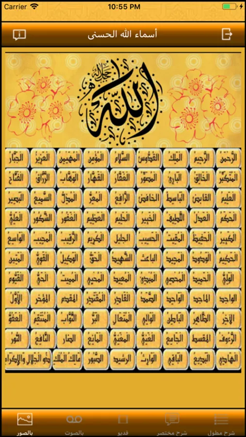 أب مبسط لمعرفة وحفظ أسماء الله الحسنى بثلاث شروح مختصرة وشرح مطول, فديو ونشيد مسموع للتشجيع على حفظها. لا حاجة للإتصال بالإنترنت مع إمكانية التكبير وتعدد المصادر.