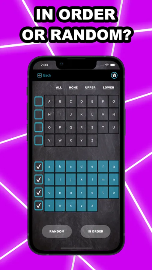 #LearnABC offers you two learning modes. You can choose to have letters in order or random.