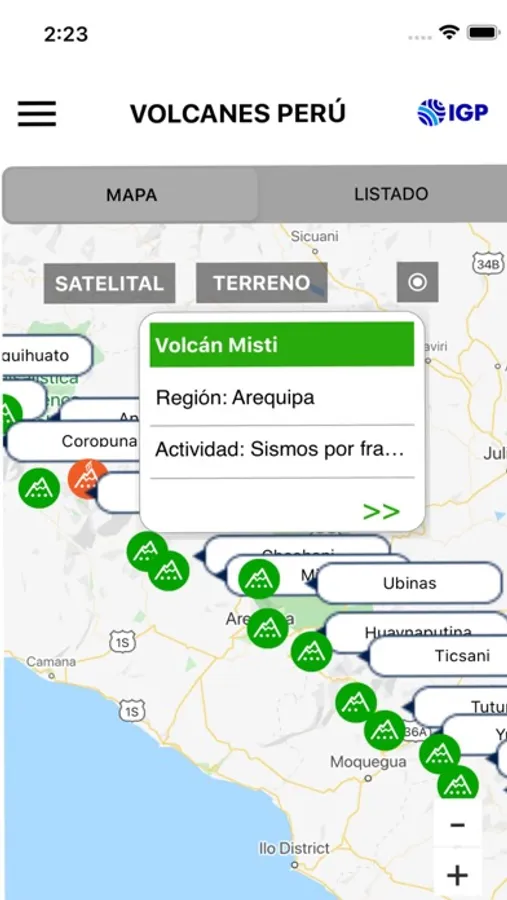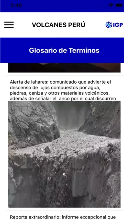 Aplicativo móvil Volcanes Perú, diseñado y administrado por el IGP es un aplicativo el cual está al servicio de todos los usuarios interesados en obtener información de las actividades volcánicas en el Perú, así también sera provisto de información en tiempo real mediante envío de notificaciones o alertas.