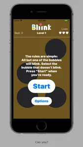 Each round, all but one bubble will blink. Your mission, should you choose to accept it, is to select which bubble did not blink. Keep a close eye on the game. Blink and you miss it.