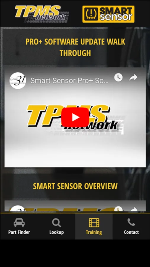 The TPMS Smart Sensor App allows the user to select a vehicle year/make/model and display the corresponding product for that vehicle. Also included is a VIN bar code scanner that can be used to display the products as well. Product information, training videos and contact support are also included.