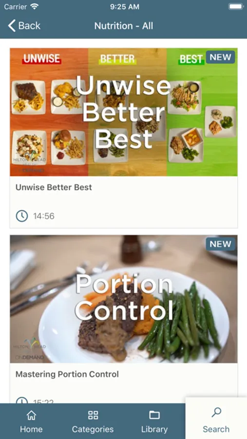 Resources include workout videos for people at all fitness levels, healthy cooking demonstrations and topics like meditation, meal planning, and managing your relationship with food.
