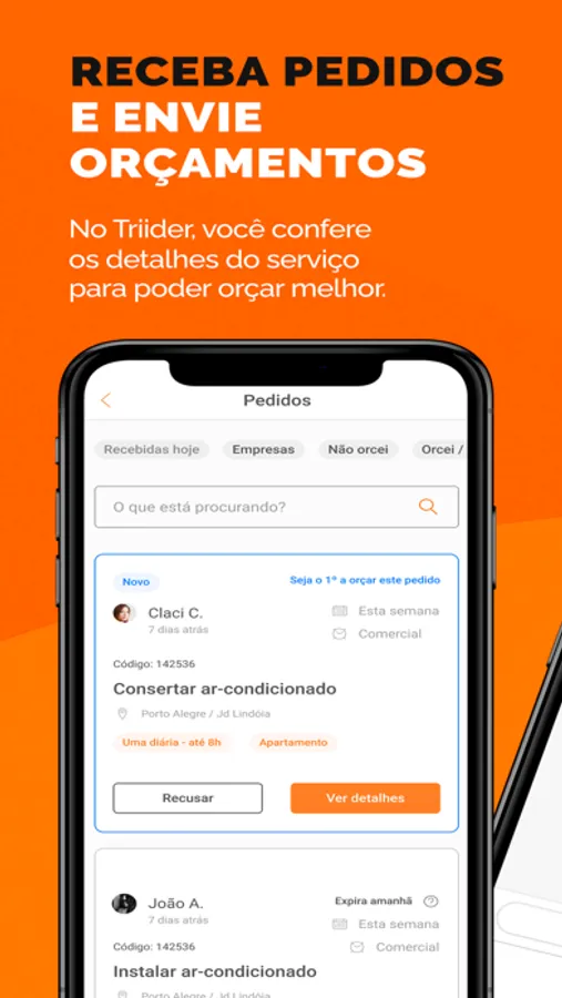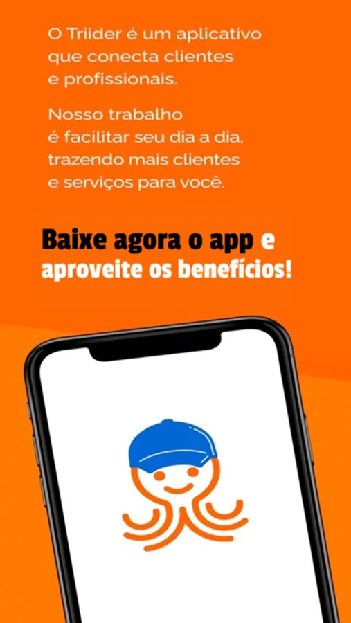 Este é o aplicativo oficial dos profissionais Triider! Se você quer contratar serviços, baixe o aplicativo Triider na cor laranja. Se você é ou quer ser um profissional Triider, você está no lugar certo!