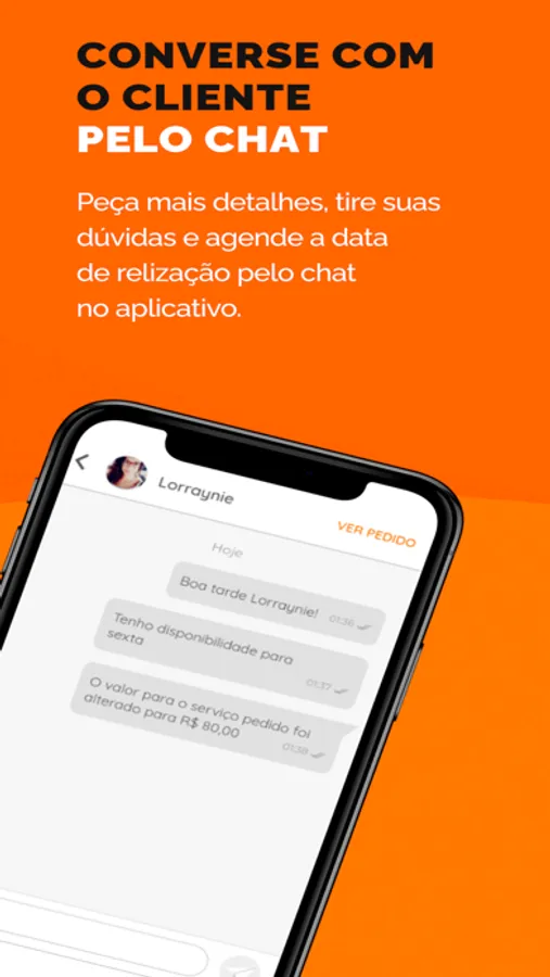 - Facilidade na hora de acertar com o cliente - tudo feito pelo nosso chat;