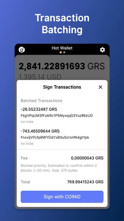 - Smart fee estimation. Never overpay fees.